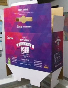 郑州包装厂订单几个维生素饮料纸箱包装,选用300克国产牛皮纸,覆亮膜,正常四色印刷,瓦楞纸选用高强E楞,结实美观大方,郑州包装厂加工的饮料纸箱里面纸是国产木浆牛皮纸,具有耐折防潮的特殊功效,饮料纸箱包装加工尺寸是300*150*260mm,该饮料纸箱包装为手提礼品样式包装,选用高级透明塑料手提扣,饮料纸箱包装下面是免粘型自封加紧插口,纸箱包装不用胶带粘口,下面还非常结实,不会吧饮料漏下了,设计的很科学,美丽大方质量高价格低,是饮料纸箱包装的首选样式和材料,做饮料纸箱包装选郑州金马包装就对了!